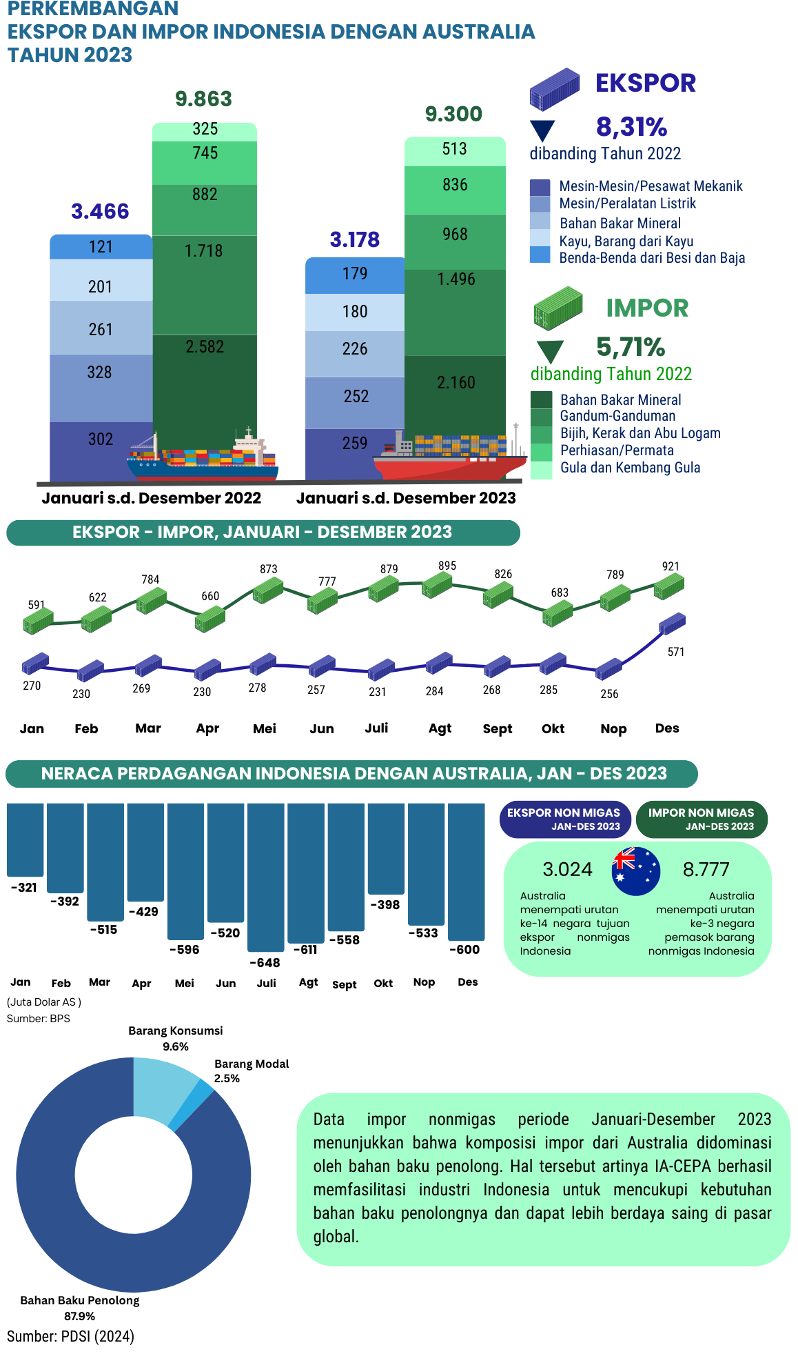 - Meningkatkan kerja sama yang lebih luas untuk mengoptimalkan pemanfaatan perjanjian. IA-CEPA dapat memfasilitasi peningkatan perdagangan yang berkelanjutan melalui 'Economic Cooperation' dalam kerangka IA-CEPA.