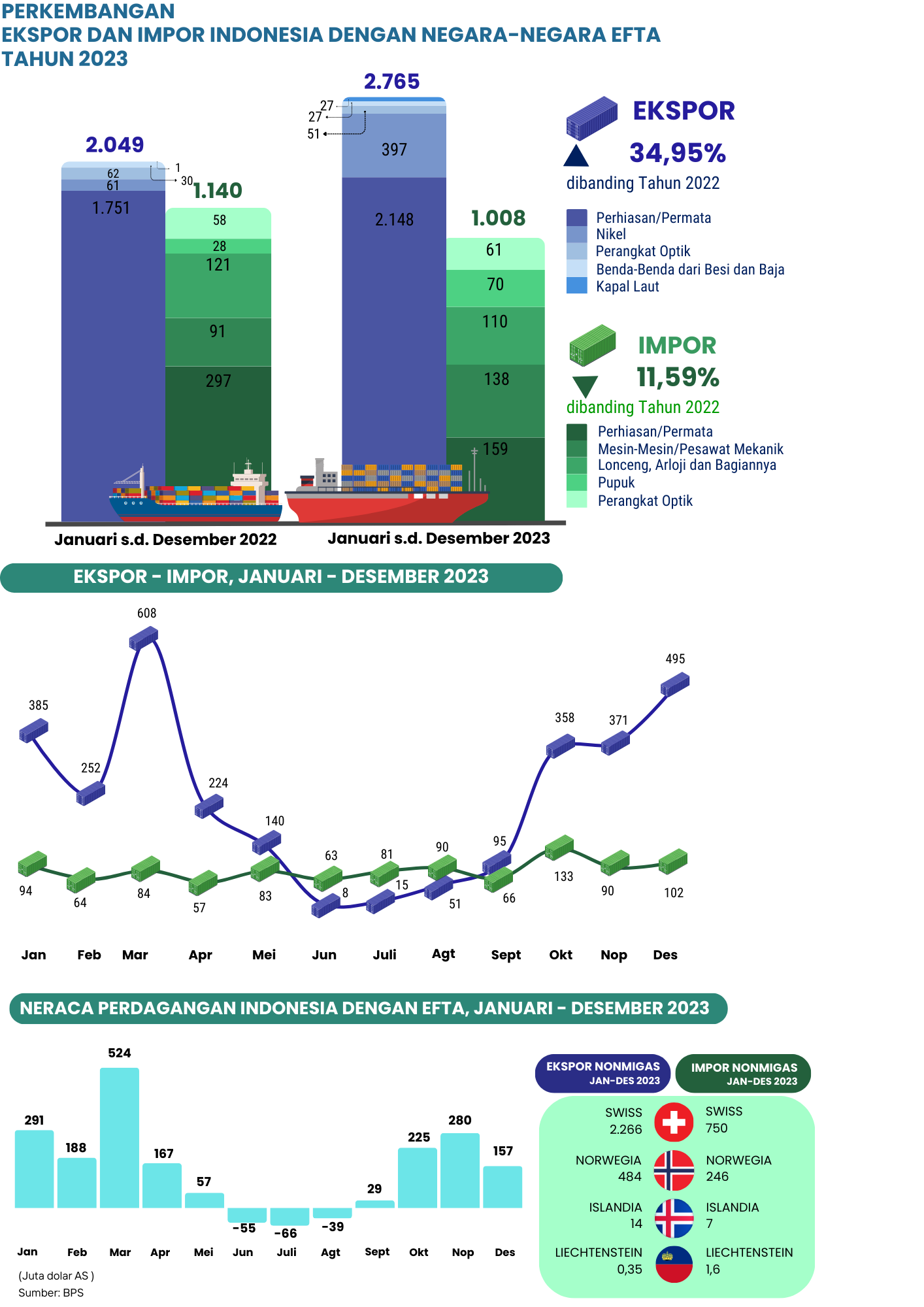 - Peningkatan investasi pelaku usaha dari negara-negara EFTA ke Indonesia, khususnya di sektor teknologi tinggi;