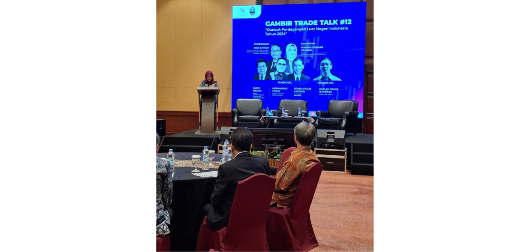 #kawaniaga Pada tanggal 23 November 2023, FTA Center Bandung berkesempatan untuk hadir dalam kegiatan Gambir Trade Talk #12 “Outlook Perdagangan Luar Negeri Indonesia” yang diselenggarakan oleh Badan Kebijakan Perdagangan Kementerian Perdagangan Republik Indonesia, yang bekerja sama daengan Dinas Perindustrian dan Perdagangan Provinsi Jawa Barat. Kegaitan ini dihadiri oleh lebih kurang 50 pelaku usaha. Kegiatan ini dihadiri oleh tiga narasumber, yakni Ketua Asosisasi Pengusaha Indonesia Bapak Mufti Hamka Hasan, Direktur Eksekutif CORE Indonesia Bapak Mohammad Faisal, serta Co-Founder Next Policy Bapak Fithra Faisal. Kegiatan ini dipandu oleh Bapak Harlan Dimas Isjawara selaku moderator.